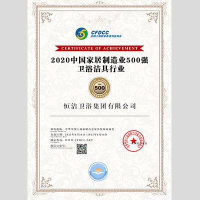獎 項:2020中國家居制造業500強衛浴潔具行業——恒潔