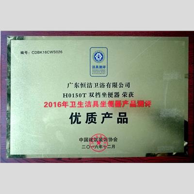 獎(jiǎng) 項(xiàng):2016年衛(wèi)生潔具坐便器產(chǎn)品測(cè)評(píng) 優(yōu)質(zhì)產(chǎn)品(雙檔)【H0150T】