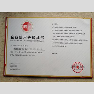 獎 項:企業信用等級證書AAA級