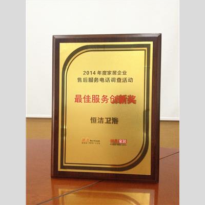 獎 項:2014年度家居企業售后服務電話調查活動 最佳服務創新獎 恒潔衛浴