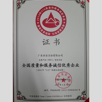獎 項:全國質量和服務誠信優秀企業