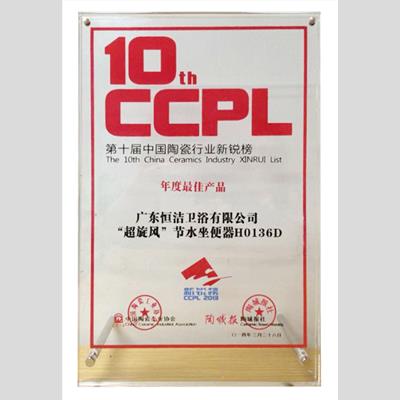 獎 項:第十屆中國陶瓷行業新銳榜“年度最佳產品”--“超旋風”超節水坐便器H0136D