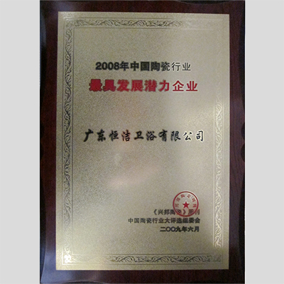 獎 項:2008年中國陶瓷行業中國最具發展潛力企業
